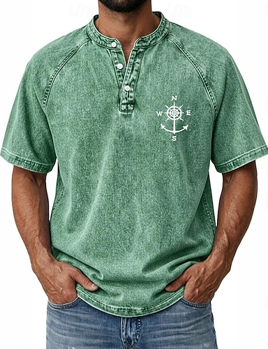 Homens Camisa jeans Camisa 100% algodão com lavagem ácida Top Henley Manga Curta Vintage Angustiado Casual Casa Rua Outono & inverno Verão Primavera Preto Rosa Verde Claro Cinzento Azul Claro