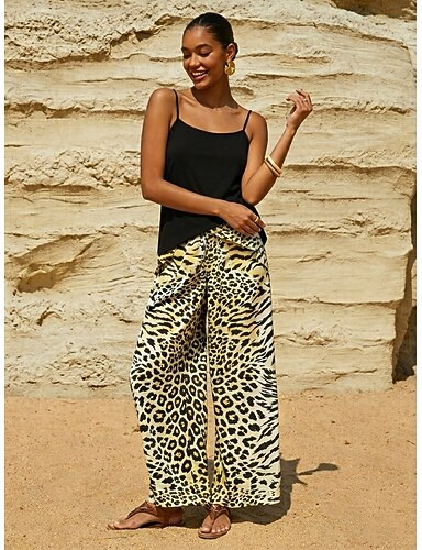 Mulheres Calças Largo Reto Comprimento total Cetim Imprimir Contemporâneo Moderno Estilo Praia Férias Roupa Diária Multi Color Primavera Verão XS S M