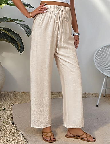 Mulheres Calças Calça casual Calça verão Elegante Moda Casual Diário Mimolet Cintura Alta Côr Sólida Tecido Com Cordão Perna larga Cintura elástica Conforto Leve Macio Sem Elasticidade Diário