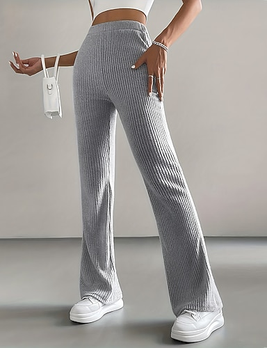 Mulheres Parte inferior do sino Casual Mimolet Cintura Alta Côr Sólida Micro-Elástica Casual Prata Café Primavera Outono