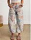 Mulheres Perna larga chinês Calças Calças Cropped Férias Vintage Básico Mimolet Cintura Alta Floral Gráfico Cintura elástica Imprimir Confortável Conforto Respirabilidade Sem Elasticidade Diário Ao