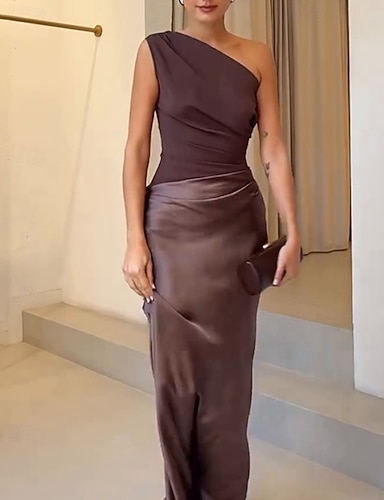 Mulheres Vestido Longo Vestido Maxi vestido de cetim Vestido de festa Vestido Coquetel Vestido elegante Elegante Moda Moderno Festa de Noite Festa Ocasião Especial Normal Tecido Sem Manga Assimétrico