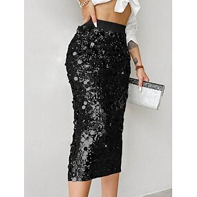 Mulheres Elegante Moda Médio Cintura Alta Saias Tecido Paetês Com Stretch Festa Rua Prata Preto Dourado Primavera
