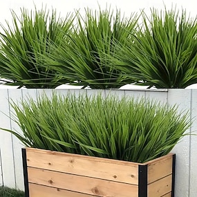 Conjunto de 12 feixes de grama artificial de primavera, com 7 hastes de folhagem artificial, ideais para paredes verdes, jardins e residências. &decoração de eventos