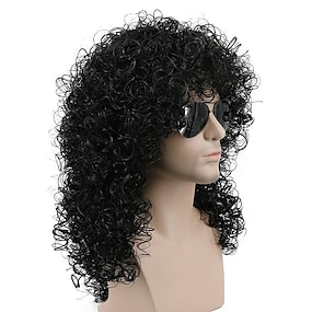 Peruca masculina longa e cacheada, cabelo sintético, estilo roqueiro dos anos 70 e 80, para cosplay, festa de Halloween