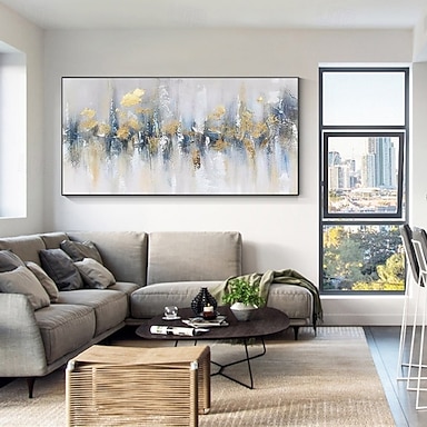 Pintura a óleo artesanal em tela, arte de parede, decoração, azul, dourado, abstrato para decoração de casa, rolou, sem moldura, pintura não esticada