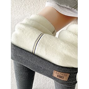 Mulheres leggings forradas de lã Calças de lã Leggings Moda Roupa de rua Casual Comprimento total Cintura Alta Tecido Confortável Macio Elasticidade Alta Ao ar livre Rua Cinzento Escuro Preto
