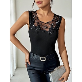 Mulheres Malha Íntima camisa sem manga T-shirt Com Transparência Floral Moda Clássico Casual Sem Manga Gola Redonda Tops regulares Diário Para Noite Final de semana Preto Verão Primavera