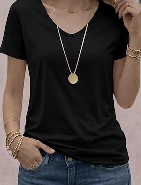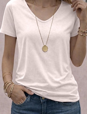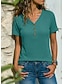 Camiseta Feminina de Cor Sólida Lisa Estilosa Moderna Casual Manga Curta Decote em V Tops Regulares Diário Final de Semana Olhais Preto Branco Rosa Azul Roxo Verão