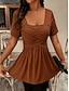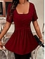Mulheres Camiseta Franzido Patchwork Côr Sólida Moda Casual Manga Curta Decote Quadrado Tops longos Diário Para Noite Final de semana Marron Escuro Preto Verde Claro Vinho Roxo Verão Primavera
