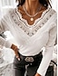 Mulheres Camiseta Patchwork Bordado Ilhó Gráfico à moda Casual Manga Longa Decote V Tops regulares Diário Para Noite Final de semana Branco Primavera Outono