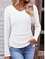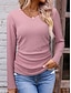 Mulheres Camiseta T-shirt Côr Sólida Moda Básico Clássico Manga Longa Decote V Tops regulares Diário Para Noite Final de semana Preto Branco Rosa Verde Cáqui Primavera Outono