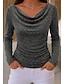 Mulheres Camiseta Tops brilhantes Elegante à moda Casual Manga Longa Gola Boba Tops regulares Para Noite Trajes de festa Roupas para encontros noturnos Prata Preto Amarelo Vermelho Verde Primavera