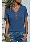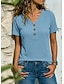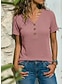 Mulheres Camiseta Tops de tricô waffle T-shirt Botões Côr Sólida Moda à moda Clássico Manga Curta Decote V Tops regulares Diário Para Noite Final de semana Azul Amarelo Rosa Verde Cinzento Verão