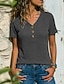 Mulheres Camiseta Botões Assimétrico Côr Sólida Gráfico Tecido à moda Casual Manga Curta Gola Boba Tops regulares Diário Para Noite Cinzento Escuro Verão Primavera