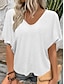 Mulheres Camisetas com bordado de olho Punho enrolado Textura Côr Sólida à moda Casual Manga Curta Manga Morcego Decote V Tops regulares Diário Para Noite Preto Branco Rosa empoeirada Verde Verão
