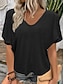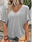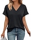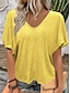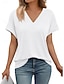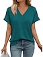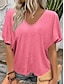 Mulheres Blusa Côr Sólida à moda Casual Manga Curta Decote V Tops regulares Diário Preto Branco Rosa Vermelho Azul Real Verão Primavera