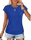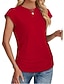 Mulheres Camiseta T-shirt Franzido Tecido Moda à moda Clássico Manga Curta Gola Redonda Tops regulares Diário Para Noite Final de semana Azul Preto Branco Rosa Vinho Verão Primavera