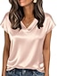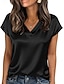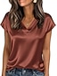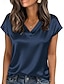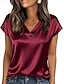Mulheres Top de cetim Camiseta T-shirt Tecido Elegante Moda à moda Manga Curta Decote V Tops regulares Diário Para Noite Final de semana Dourado Preto Vinho Vermelho Azul Marinha Verão Primavera