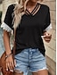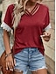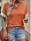 Mulheres Camiseta Top de emenda de renda T-shirt Renda Côr Sólida à moda Clássico Casual Meia Manga Decote V Tops regulares Diário Para Noite Final de semana Branco Verão Primavera
