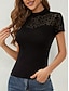 Mulheres Camiseta T-shirt Com Transparência Côr Sólida Moda Clássico Casual Manga Curta Gola Alta Tops regulares Diário Para Noite Final de semana Preto Verão Primavera