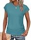 Mulheres Camiseta Camisetas Pregas Côr Sólida Elegante Vintage à moda Manga Curta Gola Boba Tops regulares Diário Para Noite Azul Preto Verde Claro Rosa Cinzento Verão Primavera