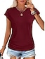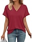 Mulheres Blusa Franzido Tecido Moderno Casual Manga Curta Decote V Tops regulares Diário Para Noite Rosa avermelhado Preto Branco Vinho Verão