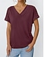 Mulheres Camiseta T-shirt Tecido Moda à moda Clássico Manga Curta Decote V Tops regulares Diário Para Noite Final de semana Azul Preto Branco Rosa Vinho Verão Primavera