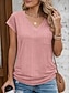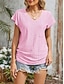 Mulheres Camiseta T-shirt Ilhó Tecido Moda à moda Clássico Manga Curta Decote V Tops regulares Diário Para Noite Final de semana Azul Preto Branco Rosa Verde Escuro Verão Primavera