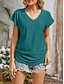 Mulheres Camiseta T-shirt Côr Sólida Gráfico Tecido Moda Clássico Casual Manga Curta Decote V Tops regulares Tops longos Diário Para Noite Final de semana Azul Preto Branco Vinho Verde Tropa Verão