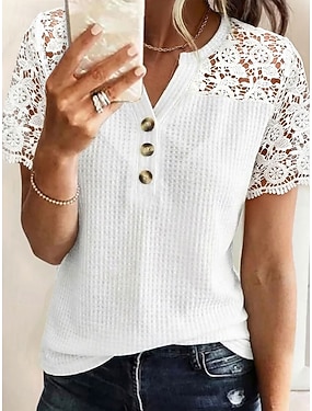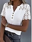 Mulheres Túnica Renda Tecido Elegante à moda Clássico Manga Curta Decote V Tops regulares Diário Branco Verão Primavera Outono Inverno
