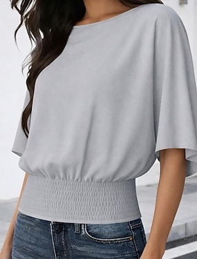 Mulheres Blusa Côr Sólida à moda Casual Meia Manga Gola Redonda Tops regulares Diário Azul Branco Amarelo Vermelho Azul Marinha Verão Primavera