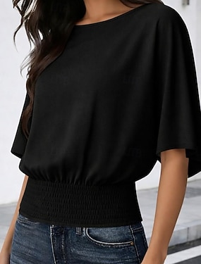 Mulheres Camiseta Blusa Tecido Vintage Roupa de rua Meia Manga Crewneck Tops regulares Diário Para Noite Final de semana Azul Preto Branco Amarelo Rosa Primavera Outono