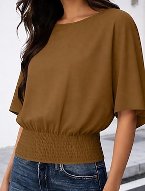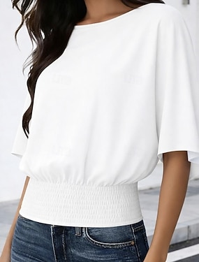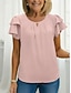 Mulheres Camisa de algodão Pregas Clássico Casual Manga Curta Gola Redonda Decote Redondo Tops regulares Diário Para Noite Final de semana Branco Rosa empoeirada Cáqui Verão Primavera