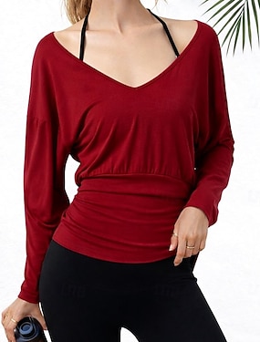 Mulheres Camiseta T-shirt Côr Sólida Moda Clássico Casual Manga Curta Manga Longa Decote V Tops regulares Diário Para Noite Final de semana Azul Preto Vinho Verde Tropa Cinzento Escuro Verão Primavera
