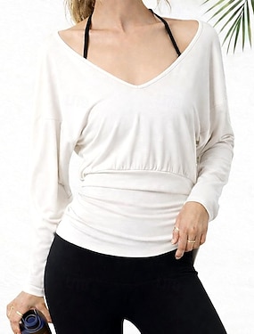 Mulheres Camisa Social Blusa Franzido Tecido Casual Manga Longa Decote V Tops regulares Feriado Para Noite Preto Branco Rosa Vinho Verde Tropa Verão Primavera