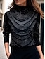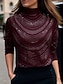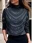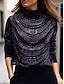 Mulheres Camisa Social Purpurina Com Transparência Elegante à moda Básico Manga Longa Gola Boba Tops regulares Azul Preto Amarelo Vermelho Roxo Primavera / Outono / Inverno / Verão