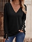 Mulheres Blusa Côr Sólida Elegante à moda Básico Manga Longa Decote V Tops regulares Diário Azul Preto Verde Tropa Roxo Primavera Outono Inverno