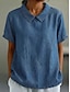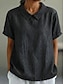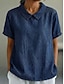 Mulheres Blusa Côr Sólida Vintage Casual Manga Curta Colarinho de Camisa Tops regulares Diário Azul Preto Azul Marinha Verão Primavera