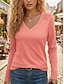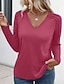 Mulheres Camiseta T-shirt Côr Sólida Moda à moda Clássico Manga Longa Decote V Tops regulares Diário Para Noite Final de semana Azul Preto Rosa Vermelho Verde Verão Primavera