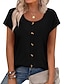 Mulheres Camiseta Tops de verão Tops de tricô waffle Frente do botão Gráfico Tecido à moda Clássico Manga Curta Gola Redonda Tops regulares Diário Para Noite Roupa de Praia Preto Branco Amarelo