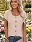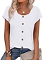 Mulheres Camiseta T-shirt Botões Tecido Moda à moda Clássico Manga Curta Gola Redonda Tops regulares Diário Para Noite Final de semana Azul Preto Branco Vinho Marron Verão Primavera