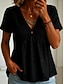 Mulheres Blusa Côr Sólida Vintage à moda Básico Manga Curta Decote V Tops regulares Diário Azul Preto Branco Amarelo Rosa Verão Primavera