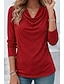 Mulheres Blusa Franzido Botões Côr Sólida à moda Casual Manga Longa Decote V Tops regulares Diário Preto Vermelho Roxo Marron Cinzento Escuro Primavera Outono Inverno