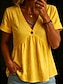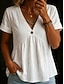 Mulheres Blusa Côr Sólida Vintage Diário à moda Manga Curta Decote V Tops regulares Diário Azul Preto Branco Amarelo Rosa Verão Primavera