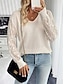 Mulheres Top de emenda de renda Tops de tricô waffle gravata na frente Renda Com Transparência Côr Sólida Elegante à moda Manga Longa Decote V Tops longos Diário Para Noite Branco Primavera Outono