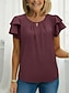Mulheres Camiseta Camisetas Côr Sólida Elegante Vintage Moda Manga Curta Decote V Tops regulares Diário Esportes Final de semana Azul Roxo Cáqui Verão Primavera Outono