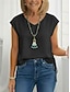 Mulheres Camiseta T-shirt Tecido Moda à moda Clássico Manga Curta Decote U Tops regulares Diário Para Noite Final de semana Preto Branco Cáqui Verão Primavera