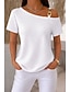 Mulheres Blusa Côr Sólida Vintage à moda Básico Manga Curta Assimétrico Tops regulares Diário Azul Preto Branco Roxo Verde Verão Primavera