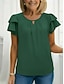 Mulheres Blusa Renda Côr Sólida à moda Clássico Casual Manga Curta Gola Redonda Tops regulares Diário Azul Preto Verde Bege Cinzento Verão Primavera